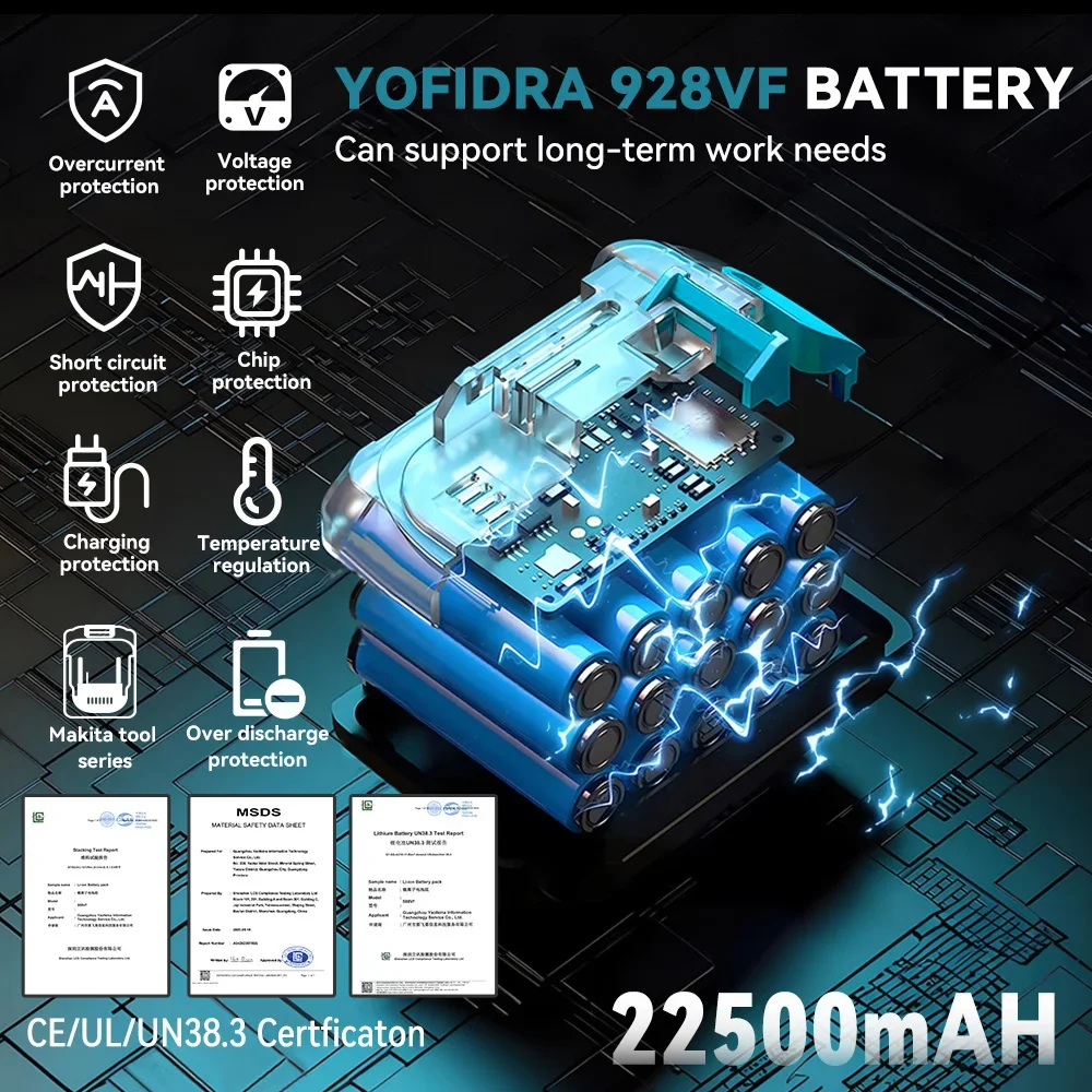 Yofidra 388VF Battery Rechargeable 22500mah 15000mah Lithium Ion Battery 928VF Li-ion Battery For Electric Wrench Drill High Pressure Washer Power Tool