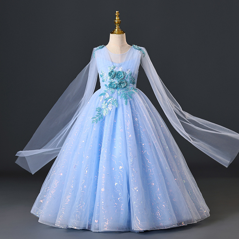 Young Colorful Beading Party Dress Sleeping Beauty Princess Gown Girls Pink Shining Tutu Dresses Kids Fashion Evening Clothing