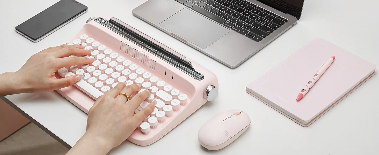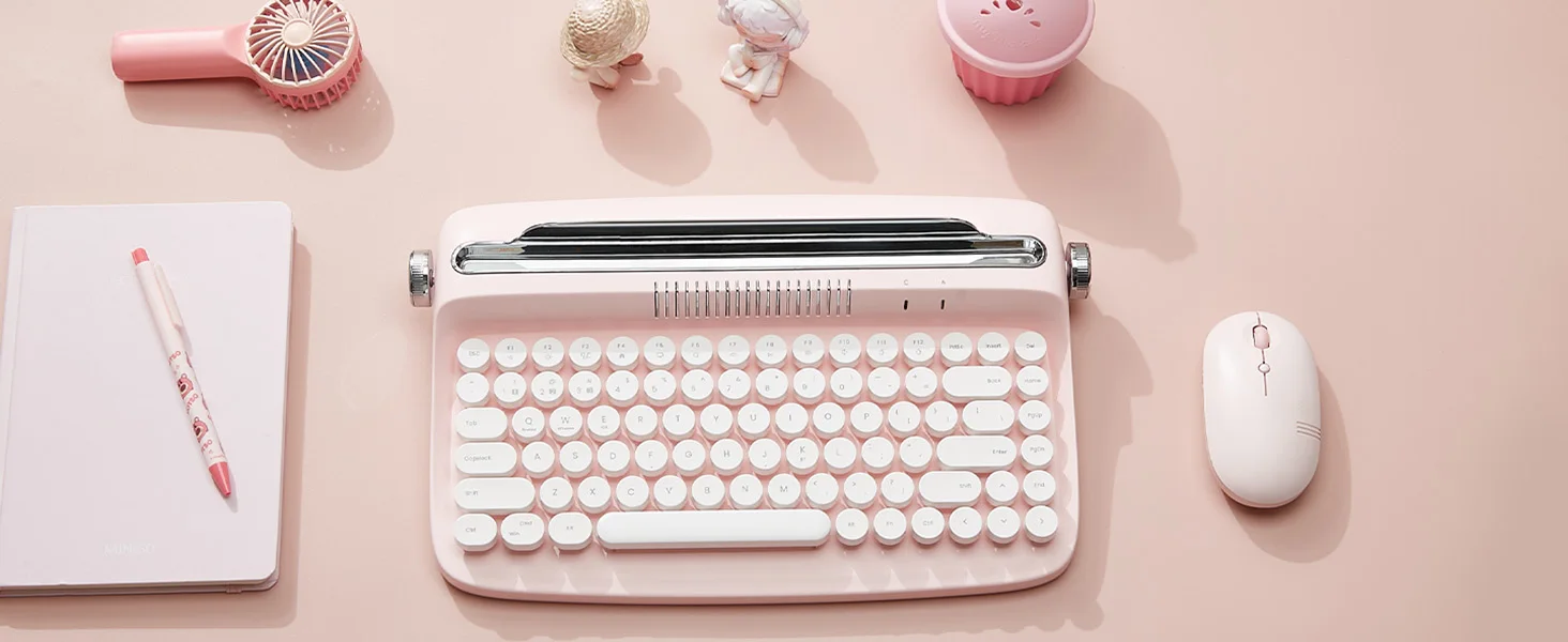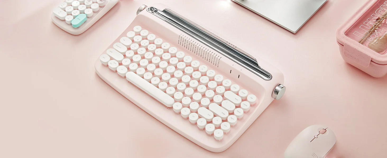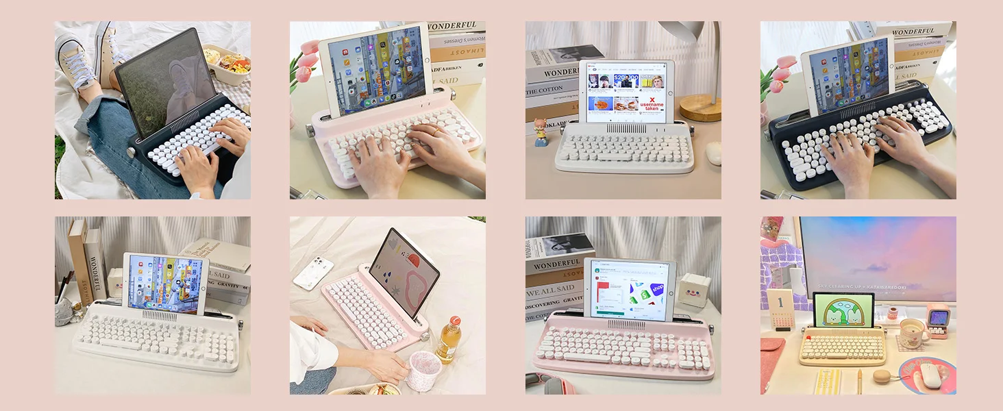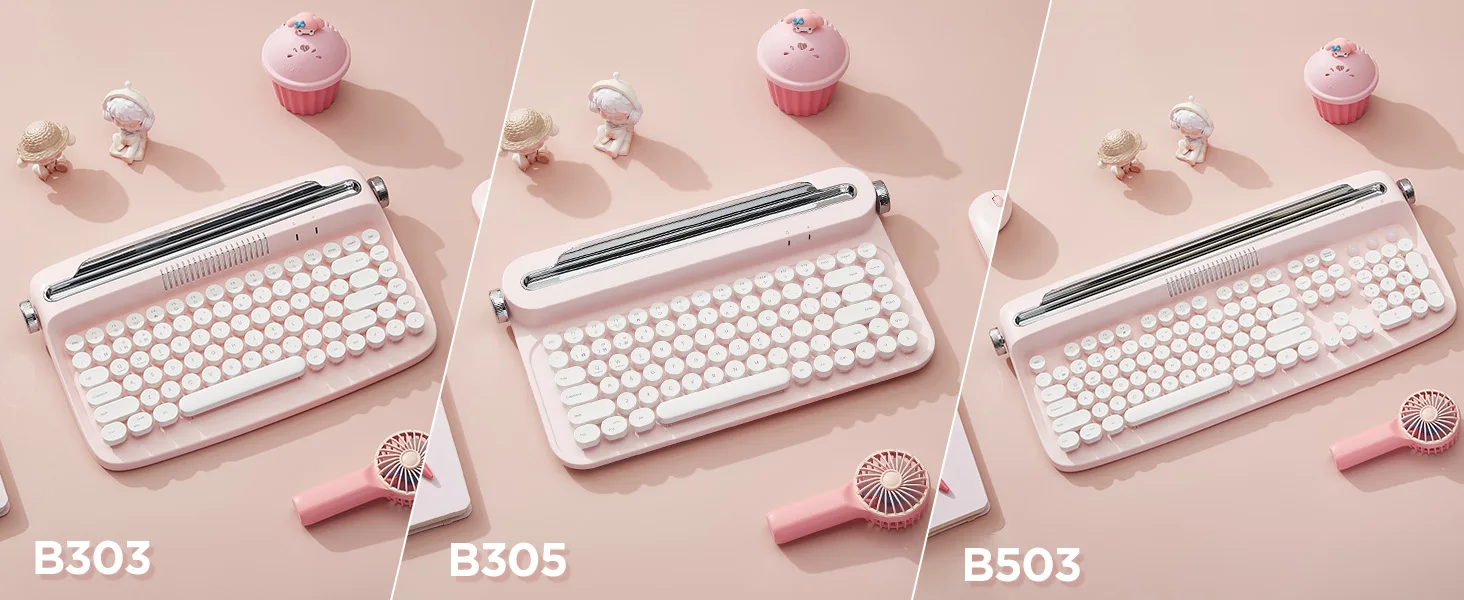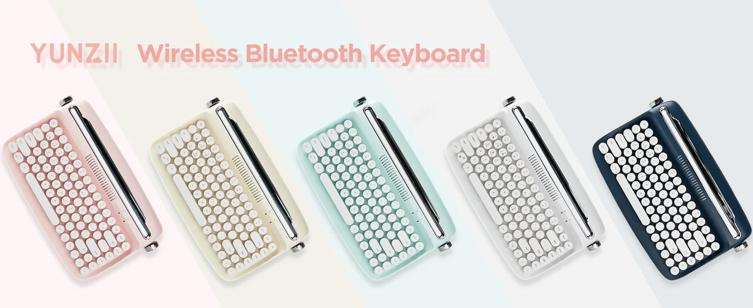The YUNZII B303 wireless keyboard offers a unique blend of vintage charm and modern typewriter function, with its compact layout, retro keyboard typewriter style, pastel color scheme, and cute round keycaps. Enjoy a more enjoyable typing experience with this eye-catching typewriter.