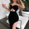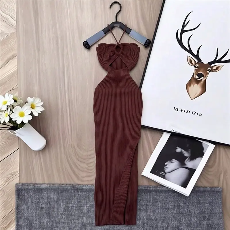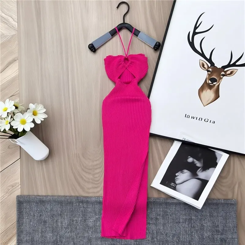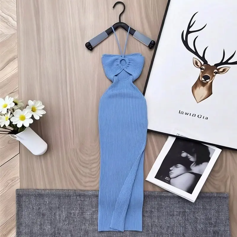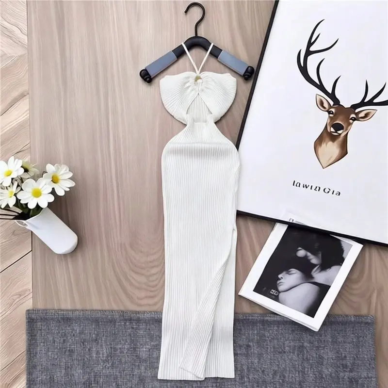 YuooMuoo Ins Hot Hollow Out Sexy Wrap Hips Split Knitted Long Dress 2026 New Y2K Halter Bodcyon Summer Dress Lady Party Vestidos