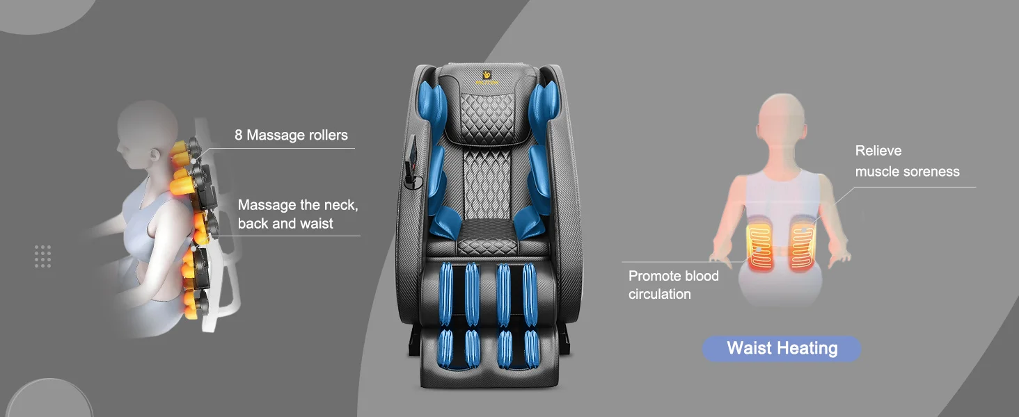 Comprehensive Body Massage:This chair features eight fixed rollers that provide a thorough massage to the back, backrest, and waist. Airbags in the shoulders, arms, hips, and calves inflate and deflate to relieve muscle tension and fatigue. The “Zero Gravity” mode reclines the chair fully, elevating your feet above your heart to reduce cardiac stress and enhance your massage experience.