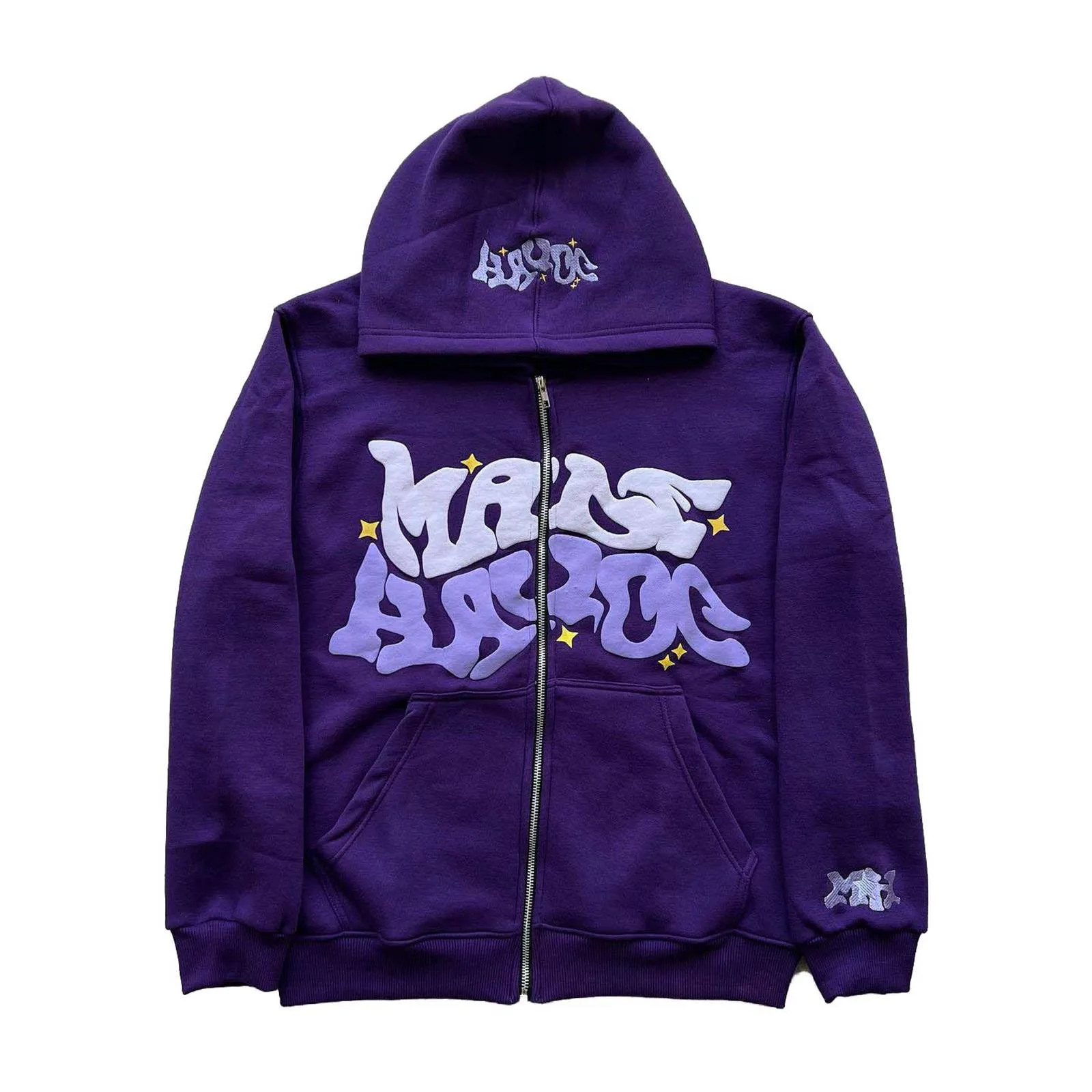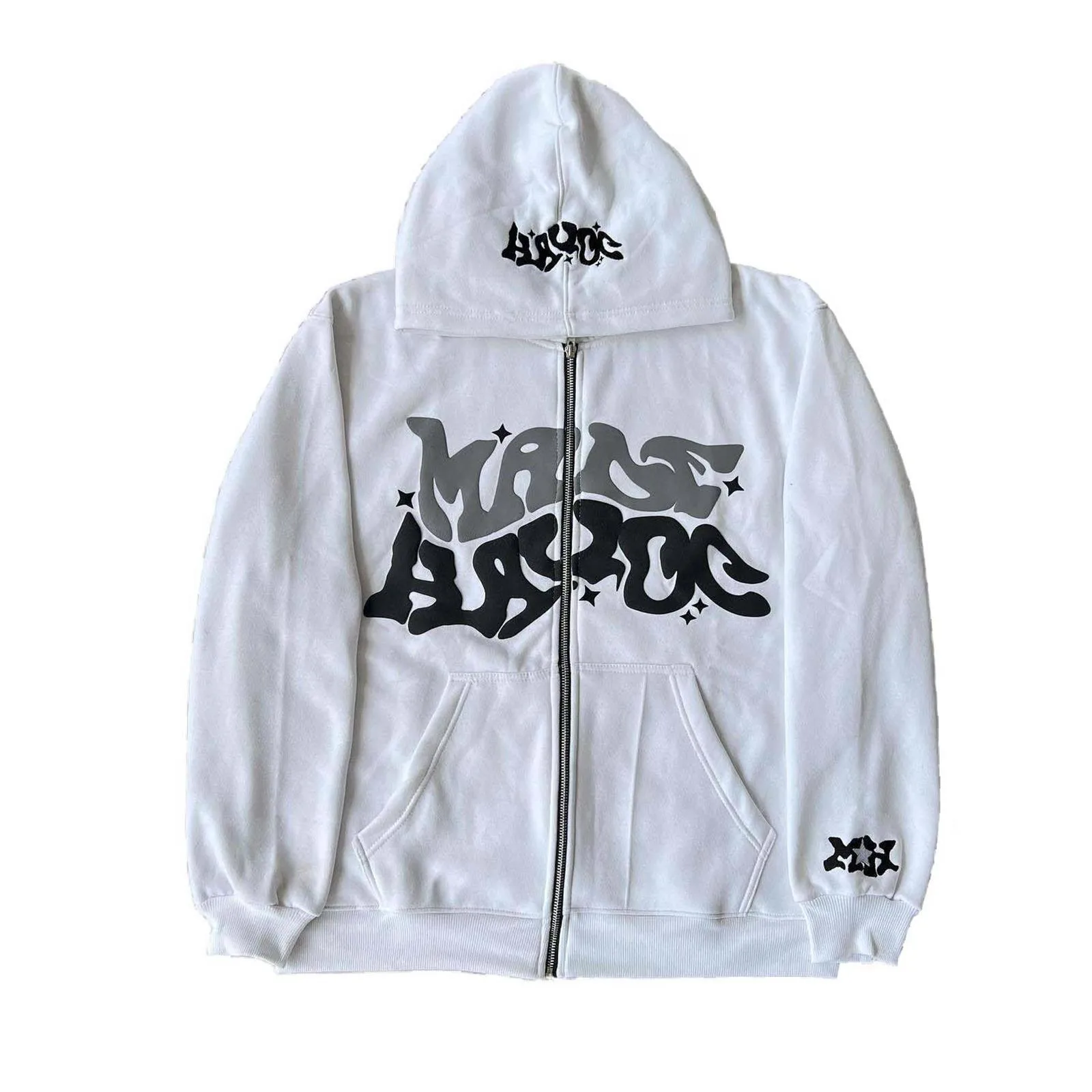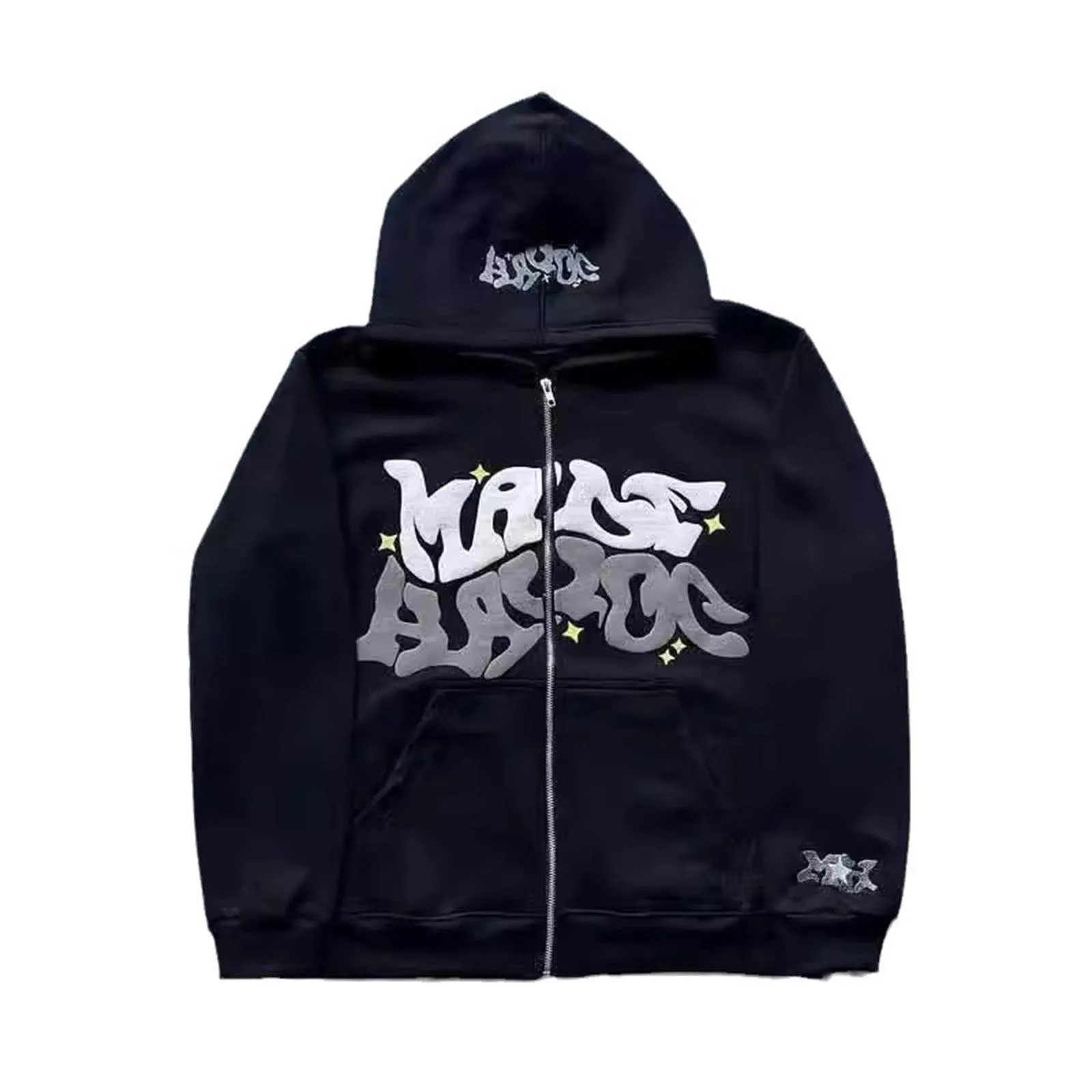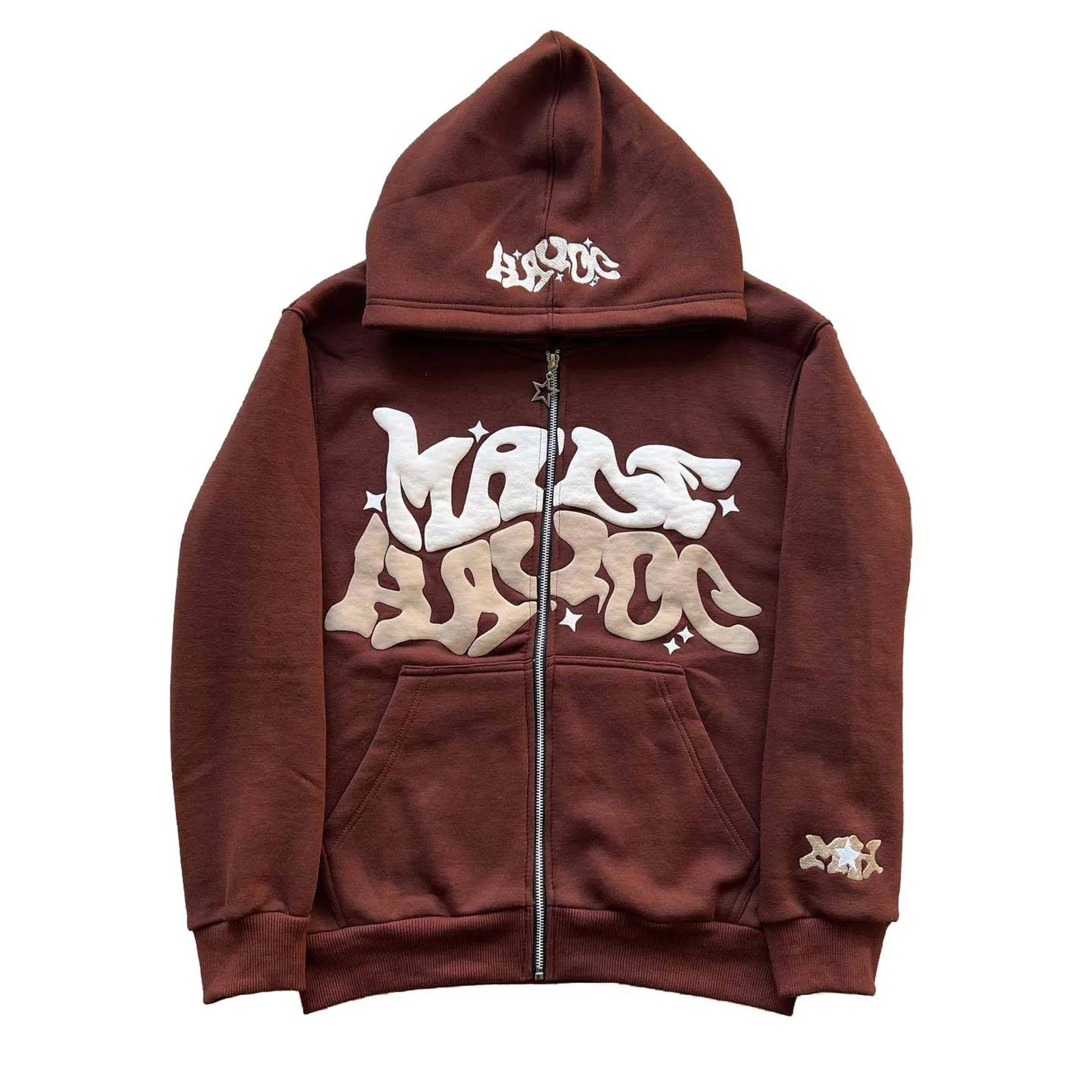 New European and street hip-hop letter printed cardigan with zippered hoodie for youth casual hoodie