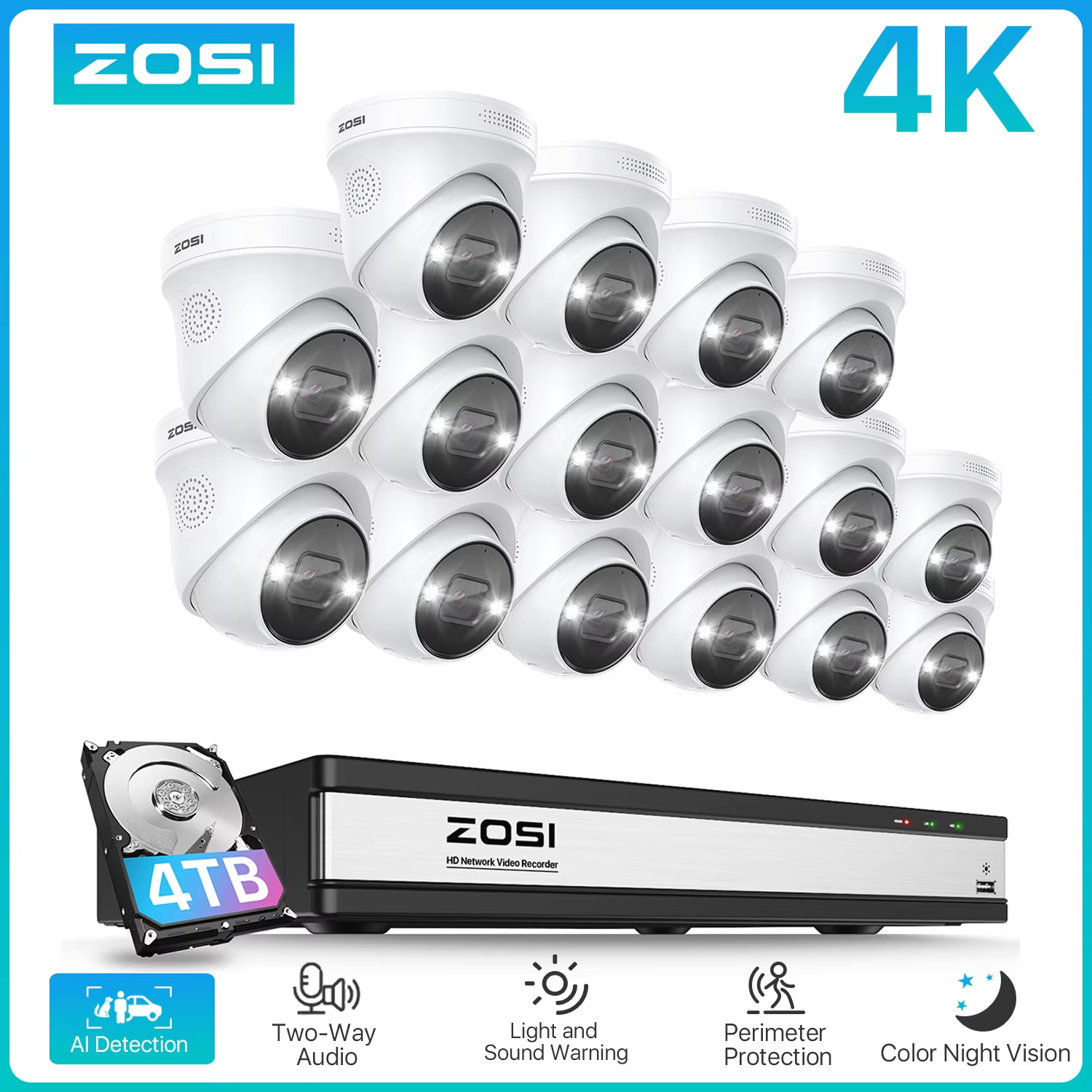 1.ZOSI’s system support smart AI Face Person Vehicle Detection,other brands only Person Detection.