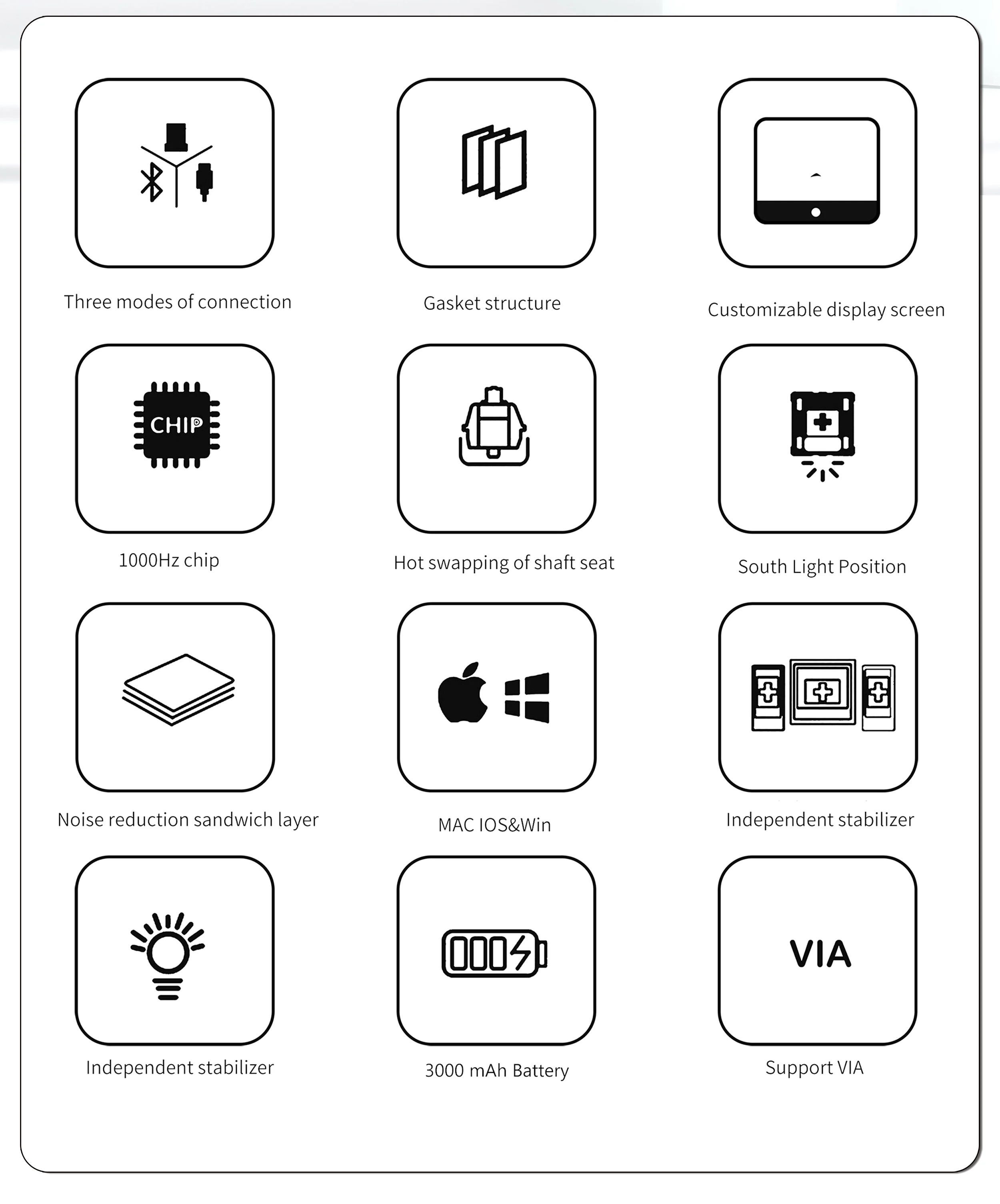 The ZUOYA GMK67-S supports connection via Bluetooth or 2.4GHz for wireless connectivity, or with the included Type-C USB cable. With Bluetooth 5.0, it easily connects seamlessly with your devices within 10 meters. Equipped with an 3000mAh battery, the keyboard is also easily switched among the three modes for efficient multitasking and speedy performance.