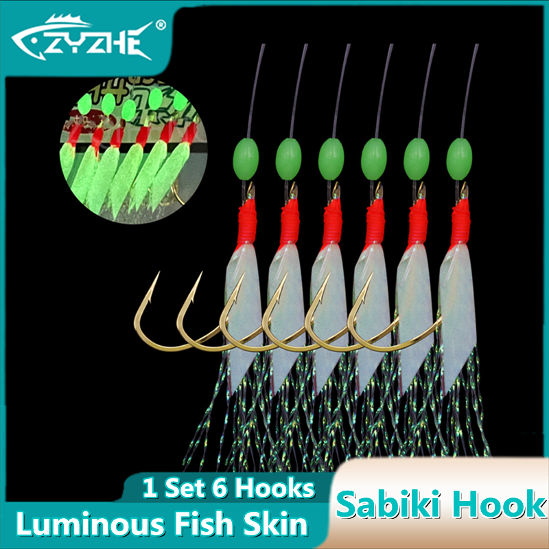 ZYZ Fishing Sabiki Hook Luminous Fish Skin String Hooks 1 Set 6Hooks Barbed Hook With Luminous Bead Fishing Accessories
